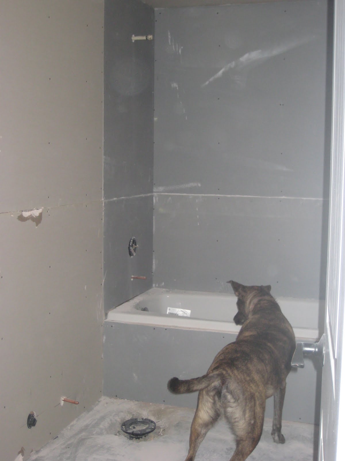 As you can tell I'm not the only one ready for this to be done...Sierra can't stand those men in her house!! There's dust all over the place down stairs; I can't even stand to go down there. BJ tells me to chill out, but if anyone knows me I can't stand a dirty house. The walls are up and ready to be textured. Spoke with the carpenter and he's going to have all the doors, trim and cabinets in this weekend. 15 days and counting!!! I've posted a couple of pics to show you just whats going on....
